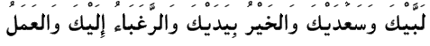 (of the Ways of Ascent, Here I am Owner of Excellence.) And Ibn `Umar used to also say: "labbaika wa sa'daika wal khairu biyadaika war-raghabaa'u ilaika wal `amalu"